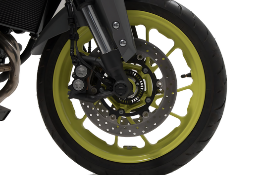 Kit de topes anticaidas para el eje delantero Negro. MT-09 / Tracer 900 / YZF-R7, Aprilia.