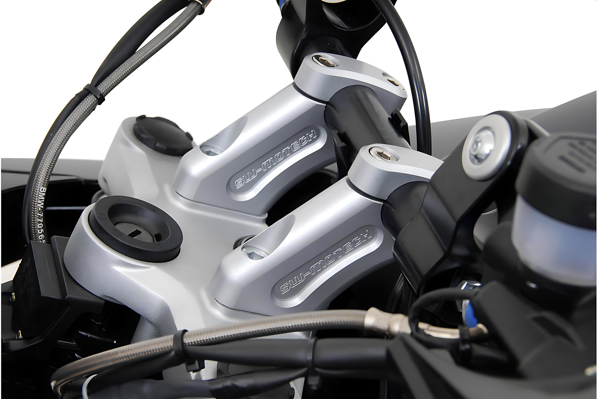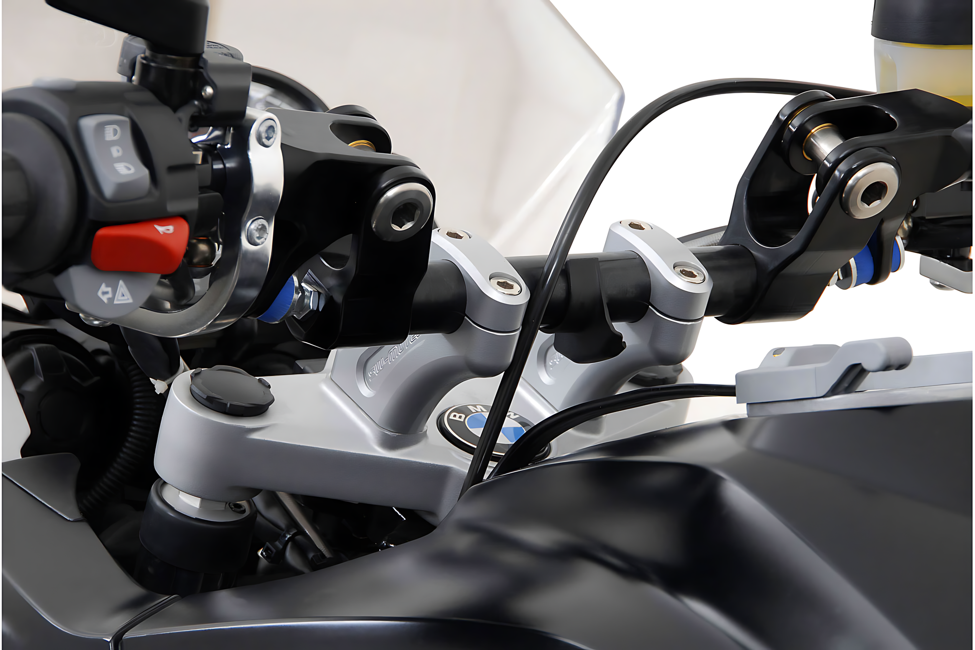 - Quien no alcance con comodidad el manillar puede escoger entre elevadores de manillar universales en diversos modelos, variantes específicas del modelo o acercadores de manillar, que además de levantar el manillar también lo desplazan hacia atrás.
