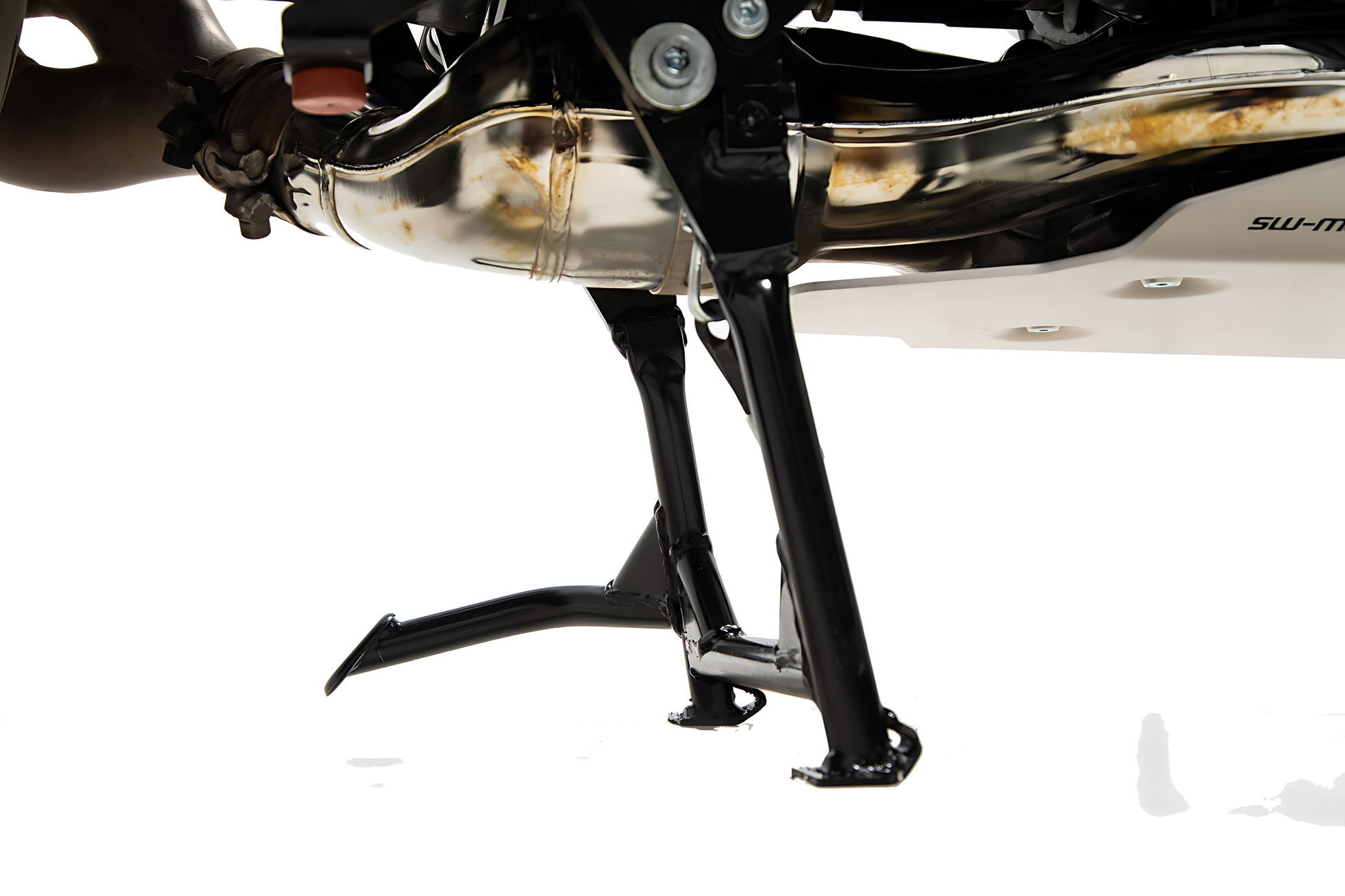 La estructura de tubo de acero, liviana y extremadamente resistente, ofrece un ángulo y una distancia al suelo óptimas, un levantamiento sobre tacos sencillo y una estabilidad firme, ya sea durante el mantenimiento o en la carretera. No suele ser necesaria la compra de soportes de montaje. Ideal para los meses de invierno: con una vida útil más larga, el caballete central aligera la carga a los neumáticos.