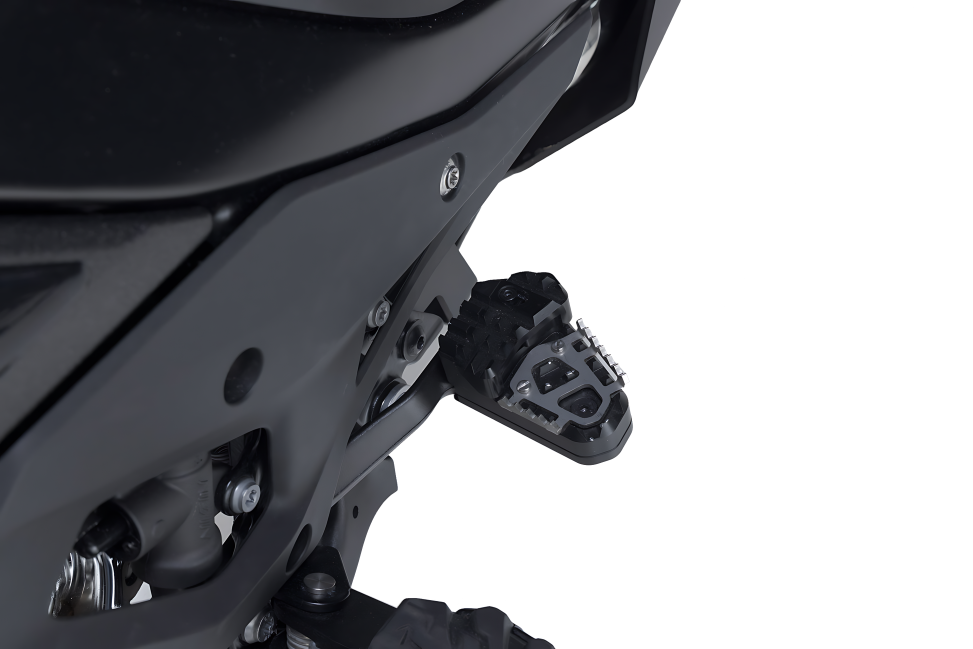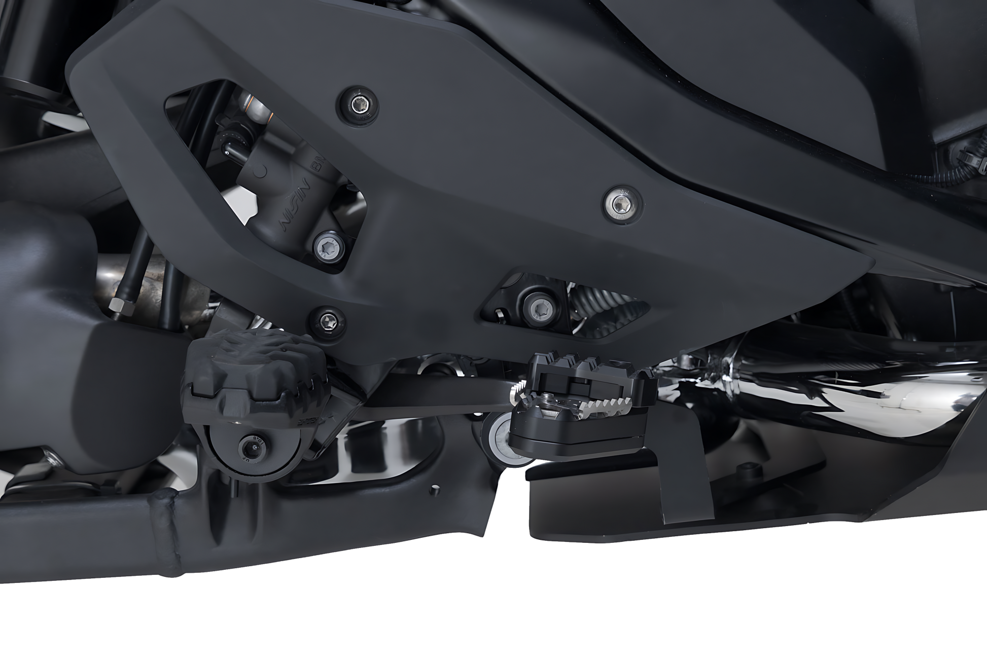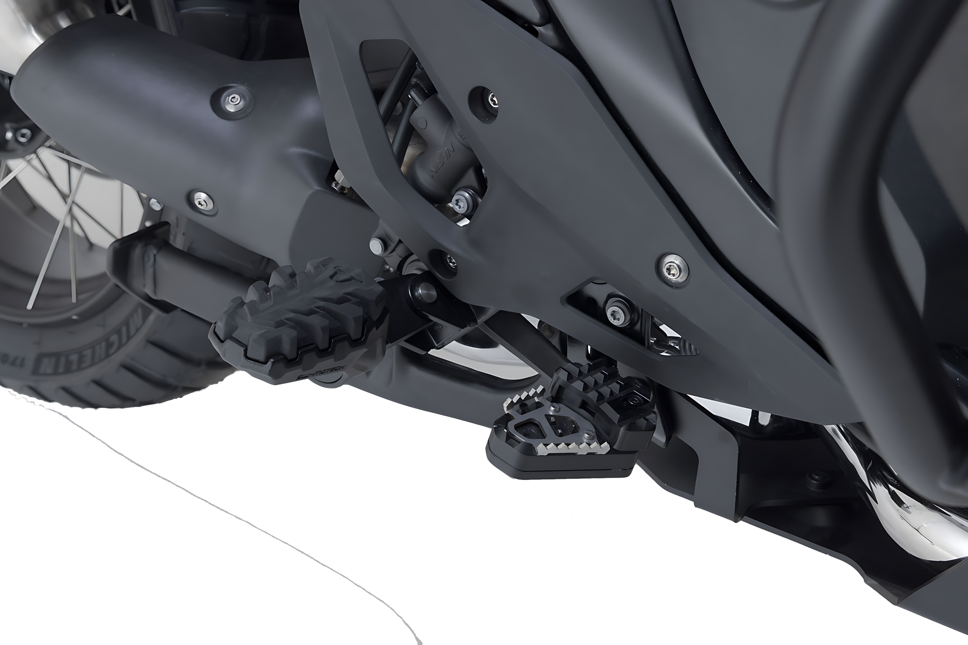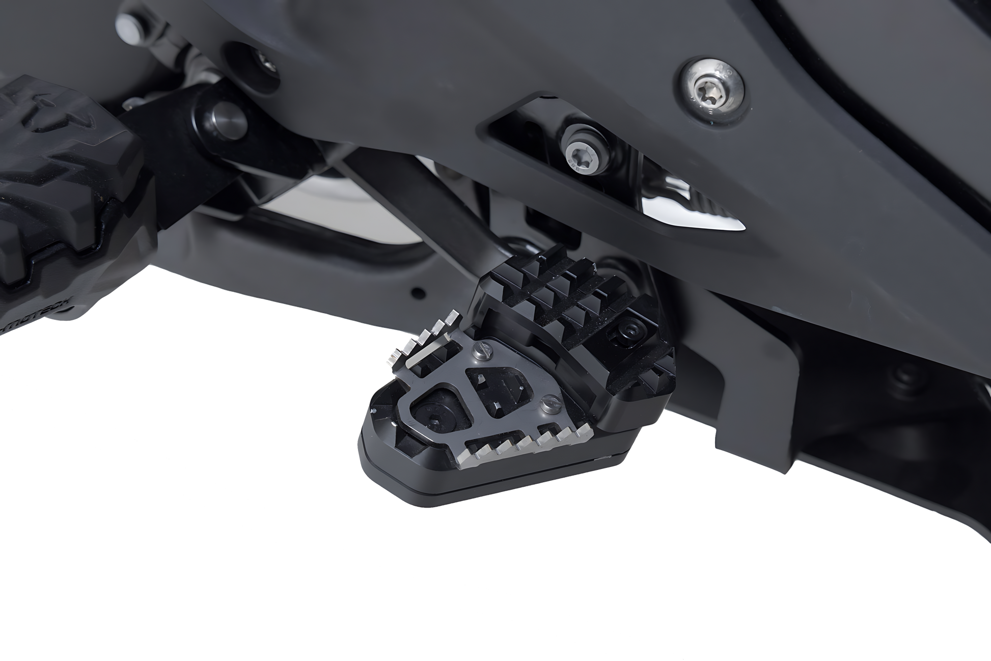 SW-MOTECH elabora las extensiones en una aleación de aluminio, fresada y muy resistente, con superficie anodizada de color negro y un estribo de acero inoxidable. Para conseguir una adaptación ergonómica óptima, la elevación del pedal de freno se puede ajustar en dos niveles: 22 o 27 milímetros.
