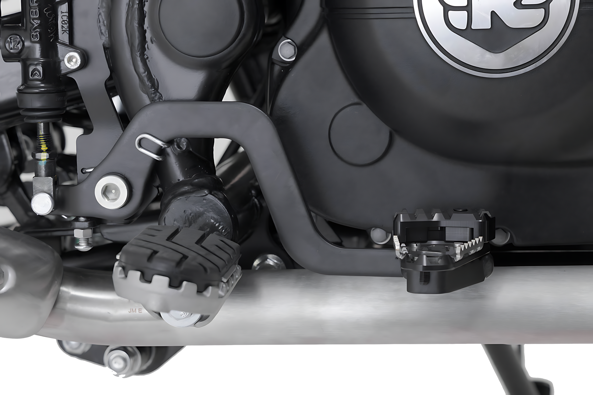 La extensión del pedal de freno es ideal para trayectos por caminos no asfaltados: complementa el estribo de freno original y garantiza una pisada de freno segura y bien dosificada. La extensión hace posible tanto ampliar la superficie de apoyo como elevarla. Con ello, la extensión del pedal de freno aporta más seguridad y un mejor control del freno de la rueda trasera.