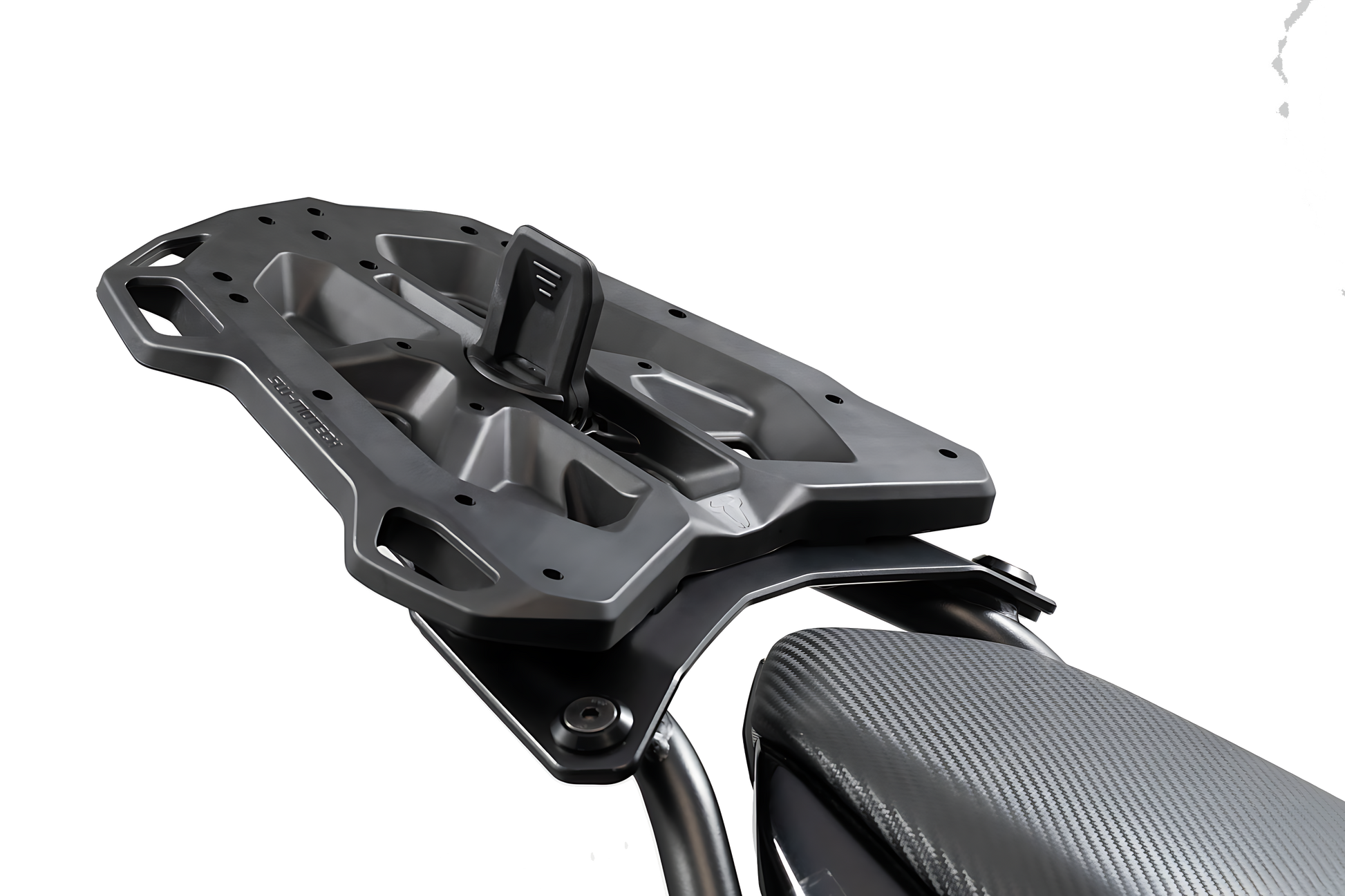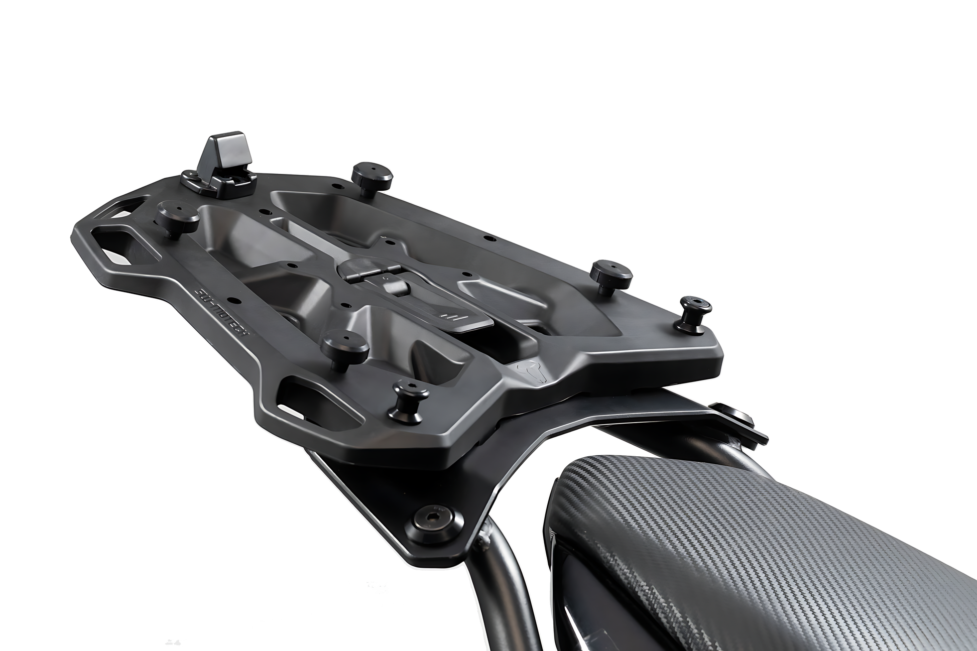 - La placa adaptadora para el STREET-RACK está disponible con distintos kits de adaptadores. Disponemos de accesorios para topcases de SW-MOTECH, Givi/Kappa, Krauser, Shad y Hepco & Becker, así como para bolsas SysBag con placa adaptadora y bolsas de depósito EVO.