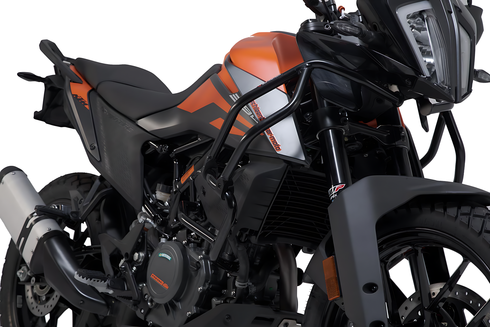 Los componentes, desarrollados exclusivamente para esta motocicleta, se adaptan a la perfección a la estética del vehículo y garantizan un montaje sencillo. Las protecciones superiores de motor protegen principalmente el revestimiento de la motocicleta y crean en ella un estilo único.