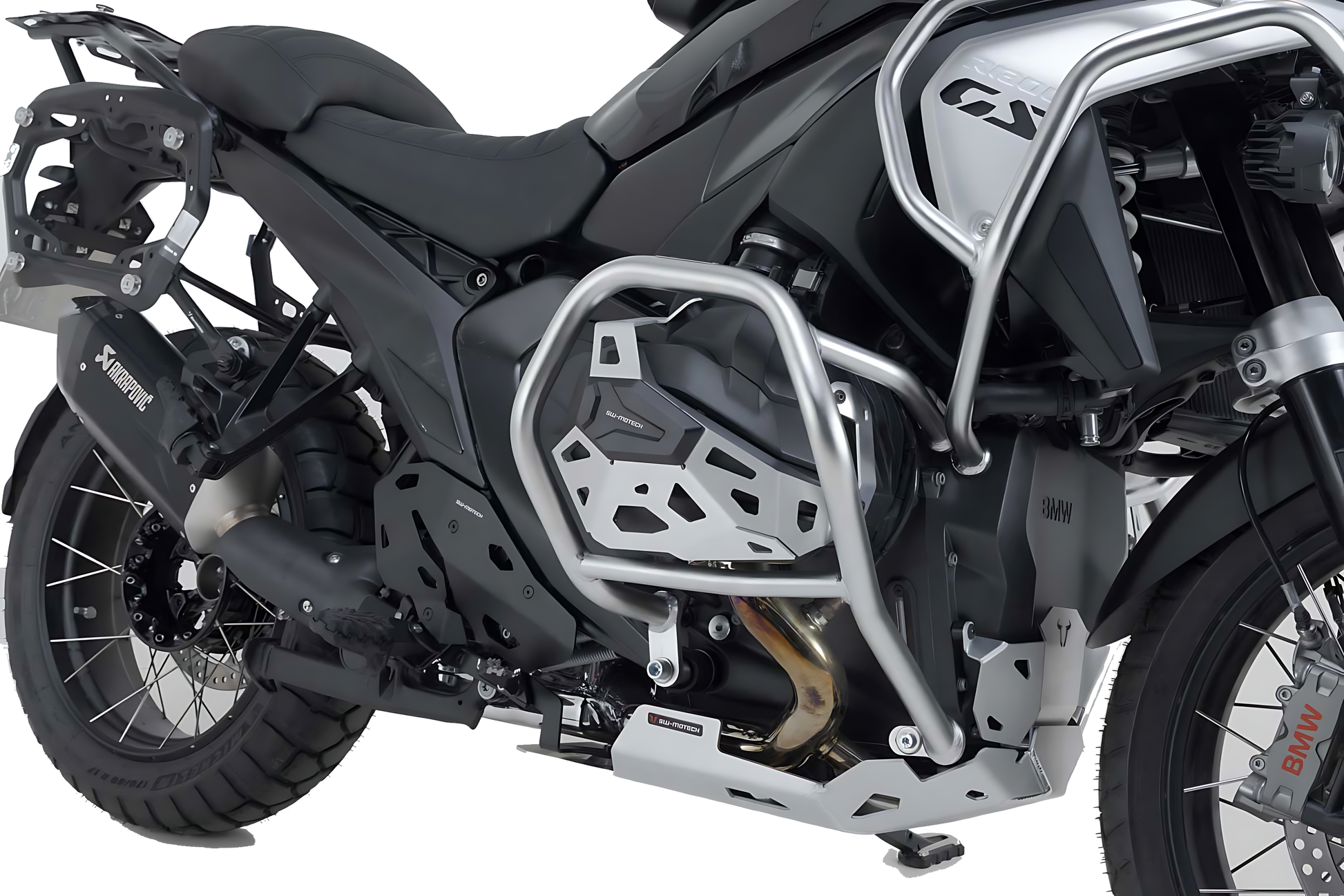 SW-MOTECH fabrica esta protección de cilindro a medida para la BMW R 1300 GS. Los protectores encajan perfectamente con el diseño de la moto.