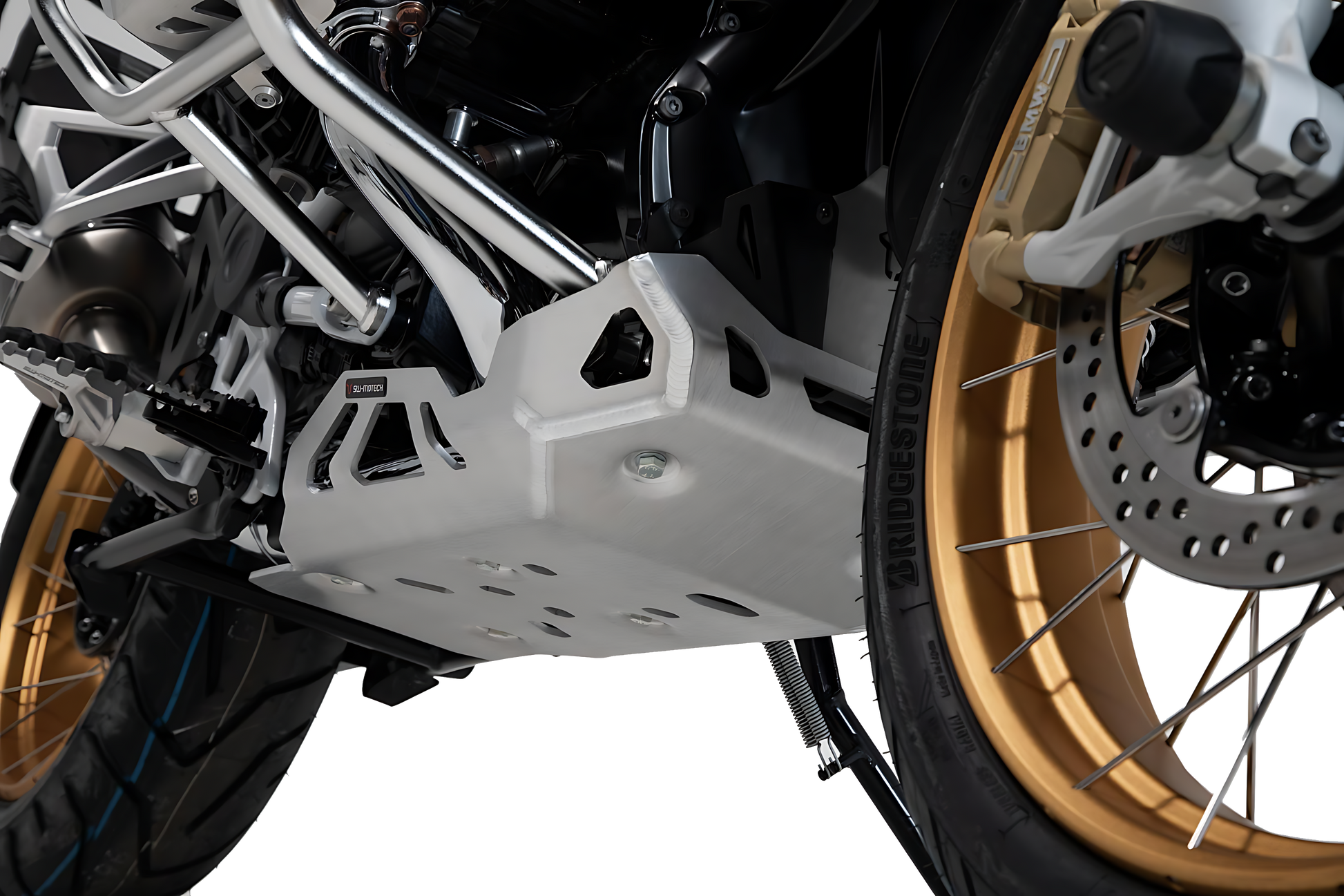 Con sus paredes de grosor cinco milímetros, este protector de motor, especialmente sólido, fabricado en aluminio cepillado, ofrece protección inmejorable a valiosos componentes de los modelos BMW R 1250 GS und R 1250 GS Adventure, tanto dentro como fuera de la carretera. La fuerza se distribuye uniformemente por los resistentes puntos de fijación mediante tres elementos de montaje. Además, estos facilitan significativamente la instalación.