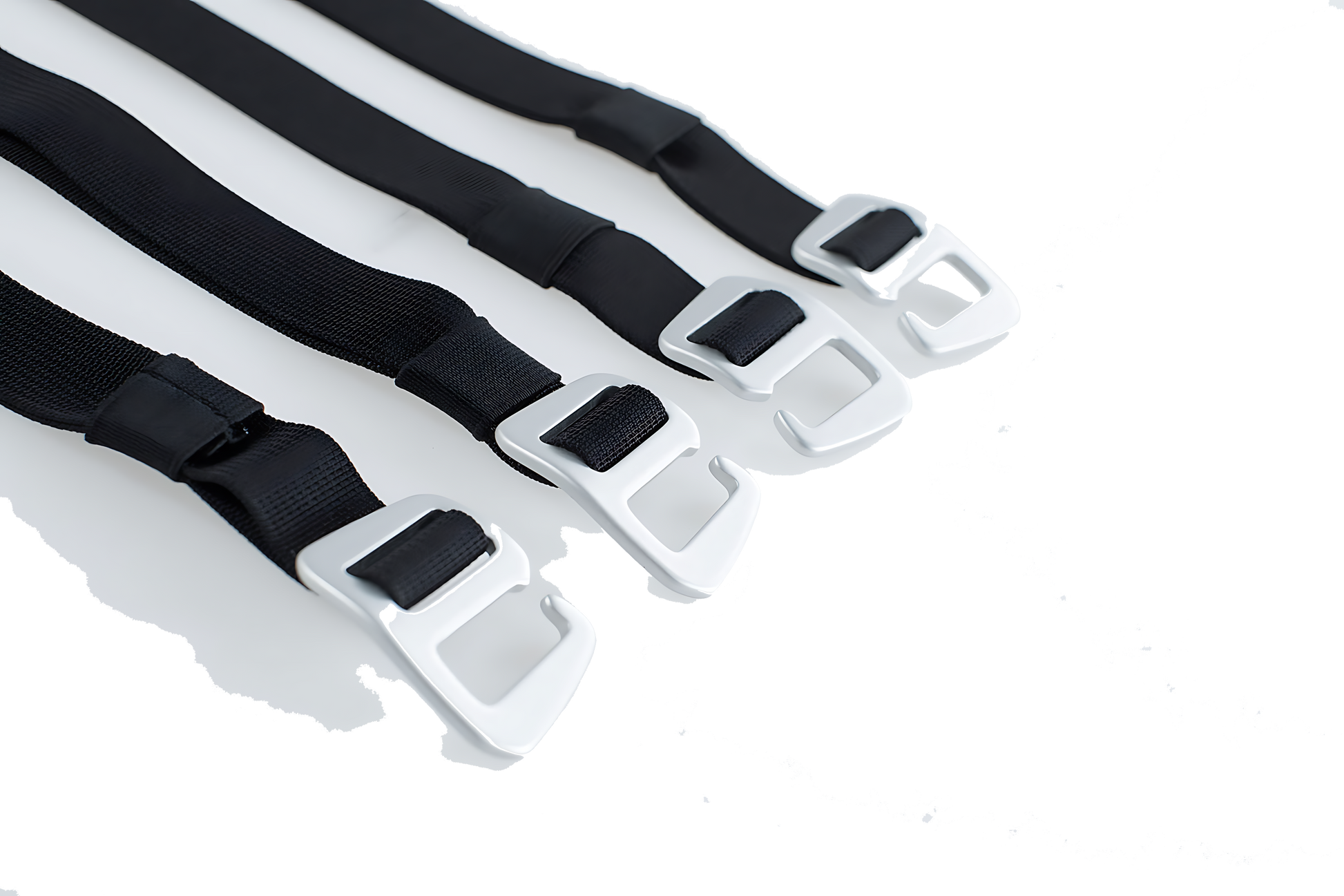 - 4 correas de cinta con ganchos de aluminio, 80 cm de largo, respectivamente 2 unidades para el lado derecho y dos para el lado izquierdo