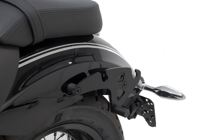 El soporte para maletas específico del modelo queda montado de forma rápida y sencilla en los puntos de sujeción originales del guardabarros. Gracias al sistema de cierre rápido, la maleta lateral Legend Gear LH se puede montar y desmontar con poco esfuerzo sin que el piloto tenga que renunciar a un sistema de fijación de bolsas de confianza.