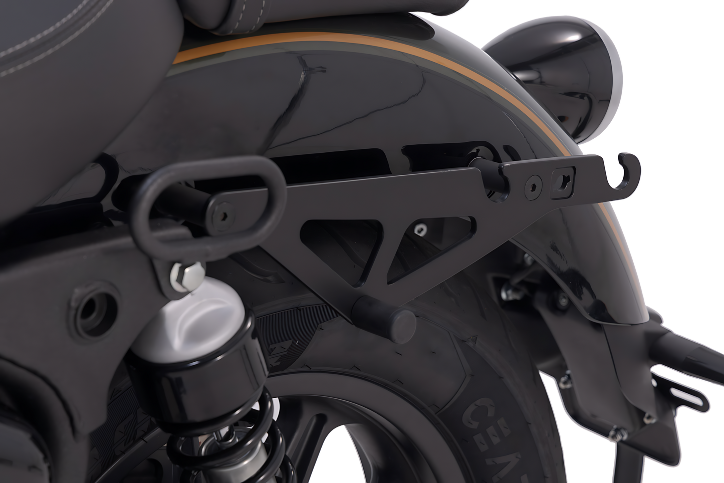 El soporte para maletas específico del modelo queda montado de forma rápida y sencilla en los puntos de sujeción originales del guardabarros. Gracias al sistema de cierre rápido, la maleta lateral Legend Gear LH se puede montar y desmontar con poco esfuerzo sin que el piloto tenga que renunciar a un sistema de fijación de bolsas de confianza.